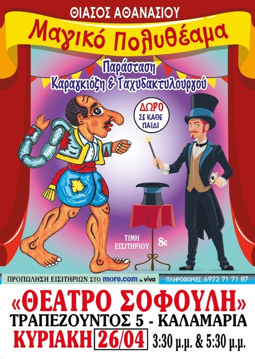 Το Μαγικό Πολυθέαμα ταξιδεύει σε όλη την Ελλάδα και κάνει στάση στο Θέατρο Σοφούλη την Κυριακή 26 Απριλίου με δύο παραστάσεις στις 15.30 και στις 17.30.